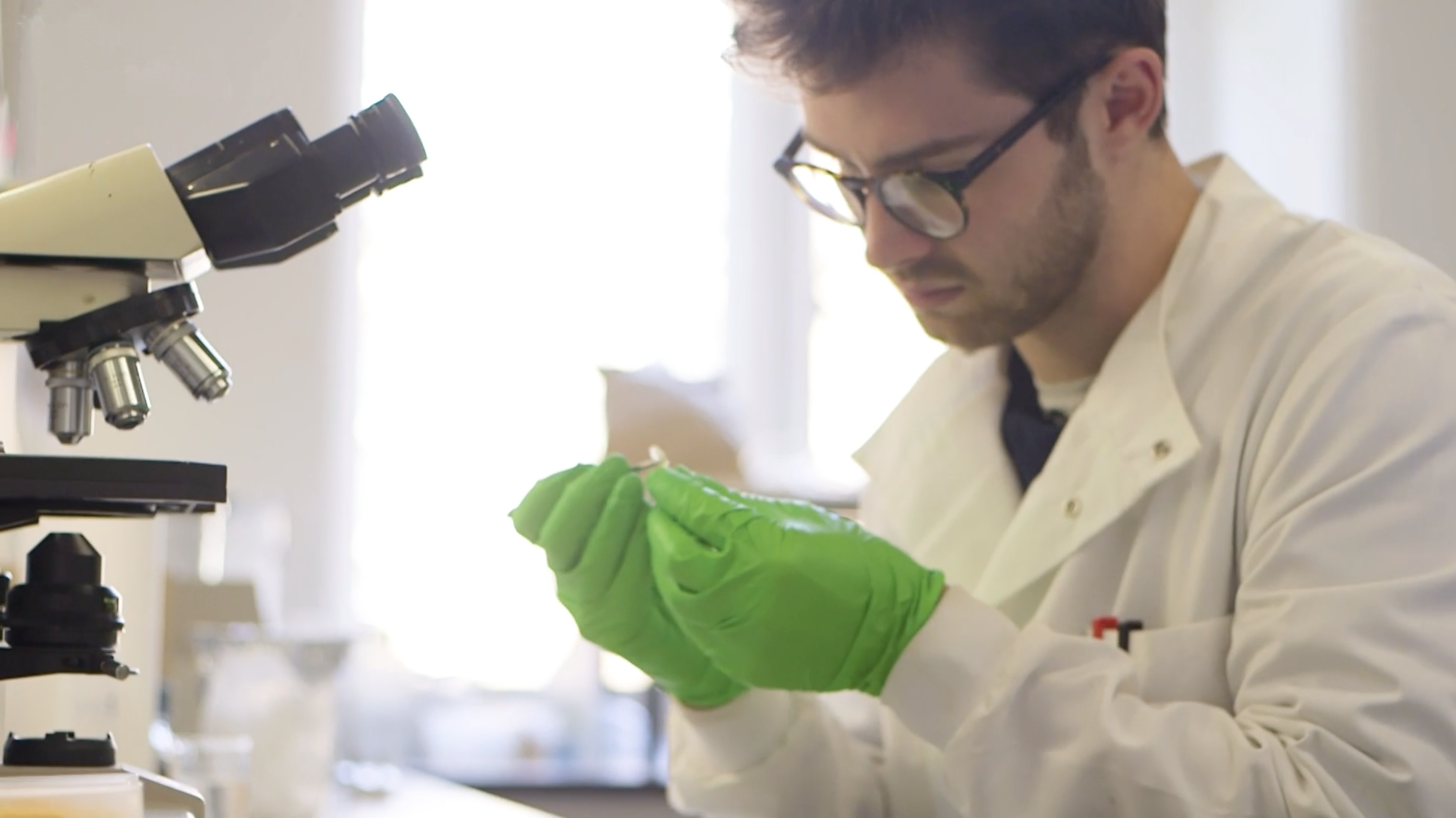2. This medium shot shows the action, and gives more information about the scientist (image credit: plant scientist, Dr. Jake Moscrop, filmed by Orinoco Communications)